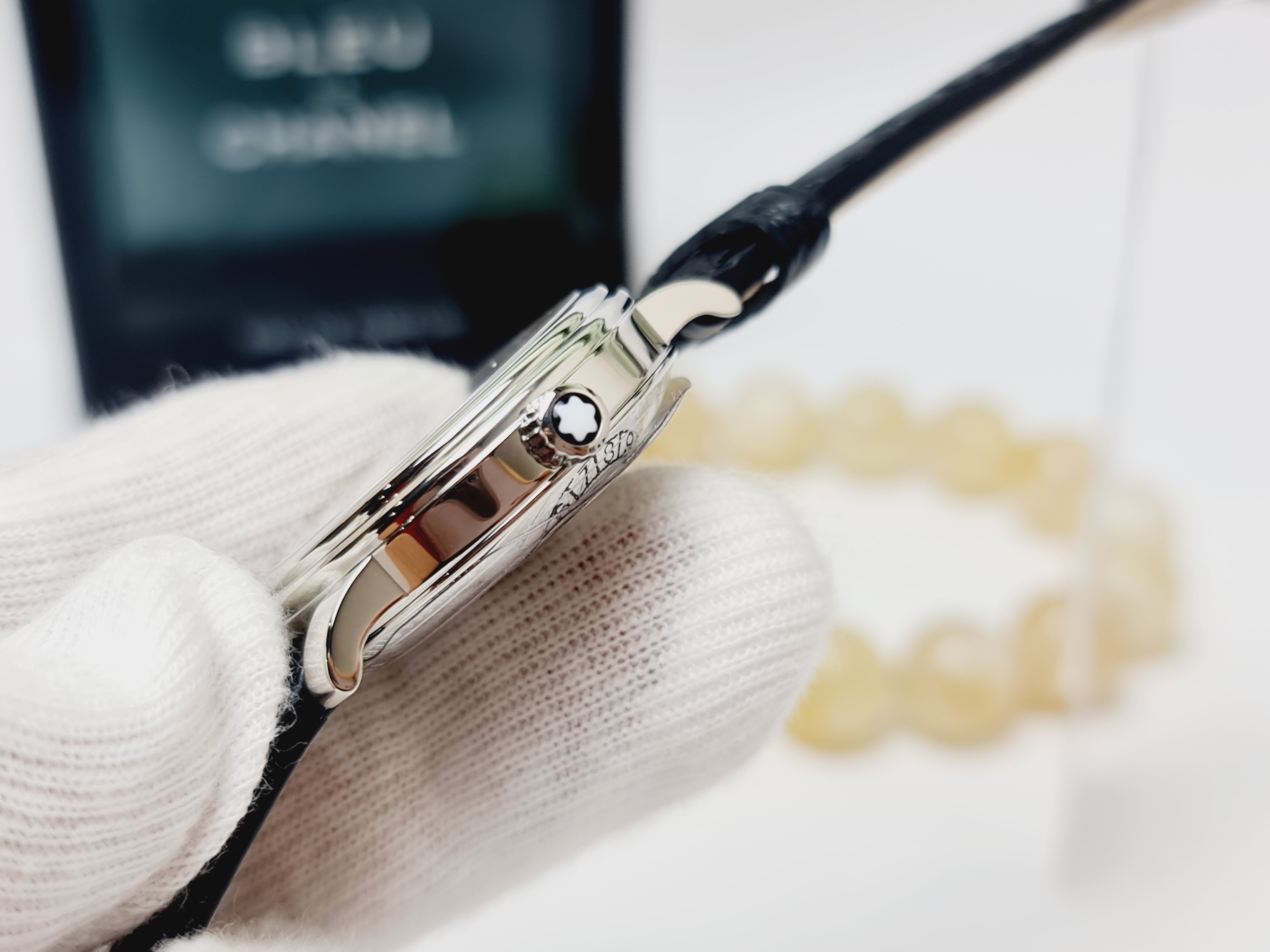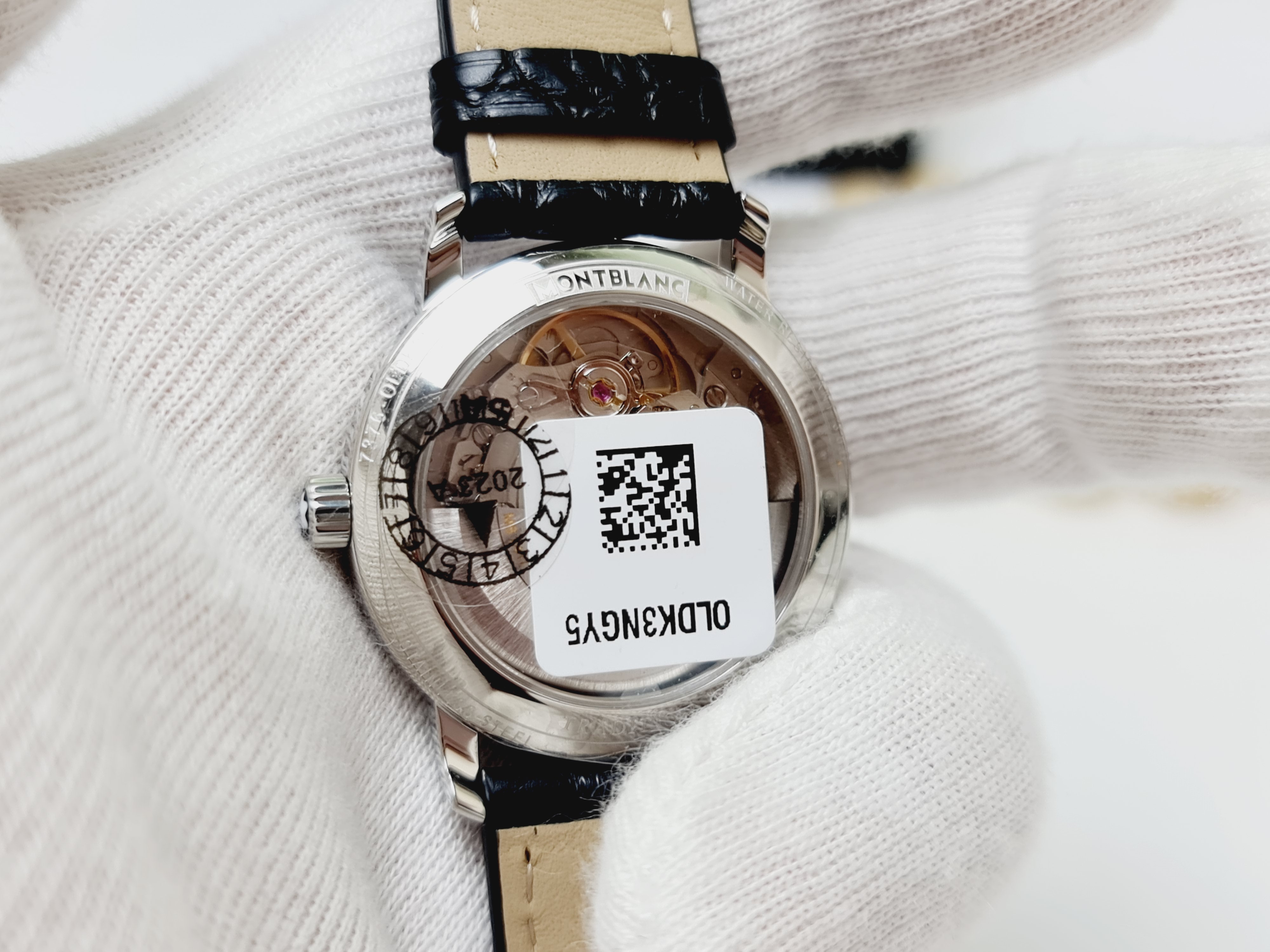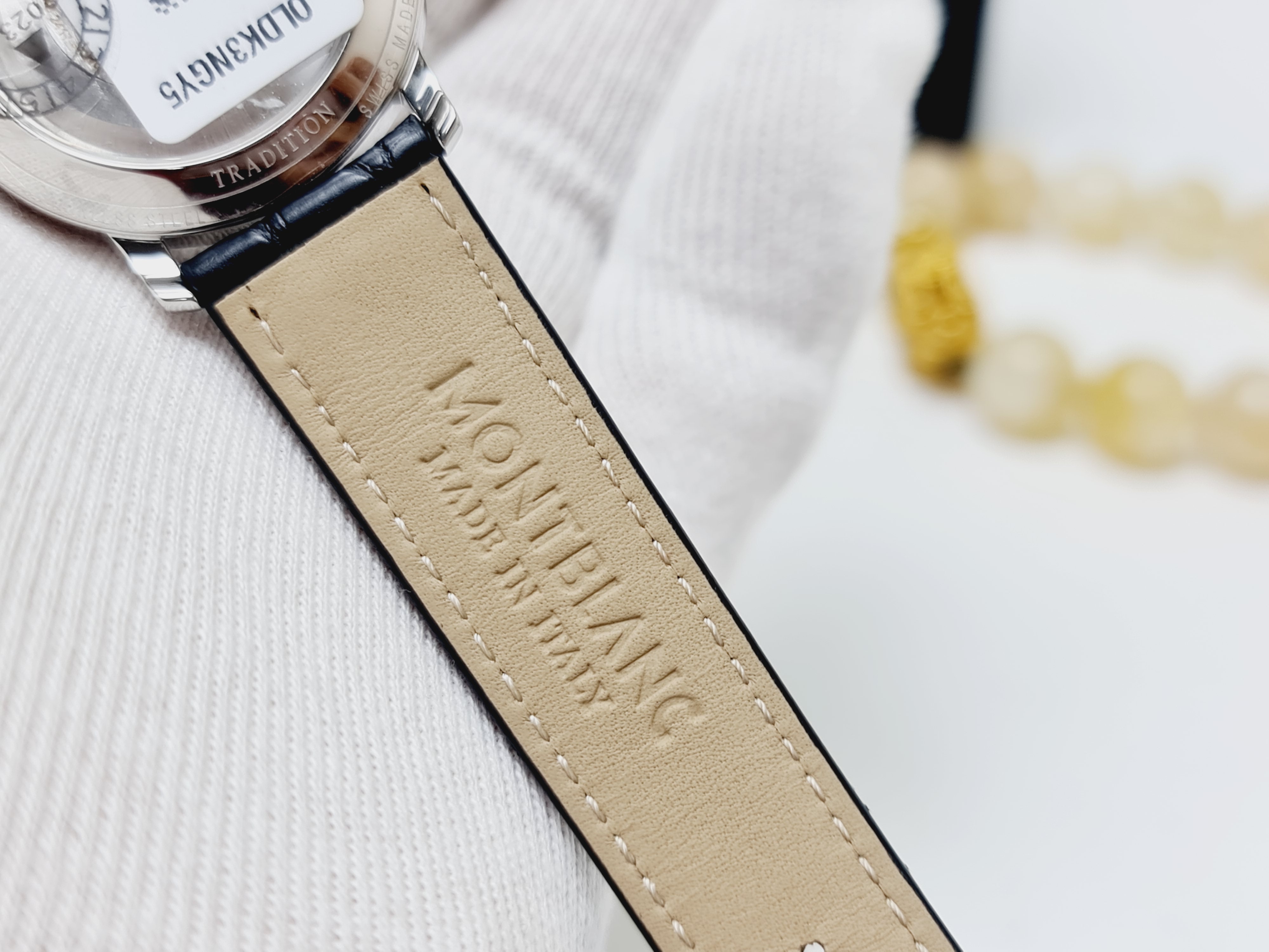 – Thiết kế cổ điển sang trọng và lịch lãm Montblanc Tradition Nổi bật với cọc số giờ làm bằng kim cương và bộ kim giờ phút giây bằng vàng hồng đúc 18K Gold