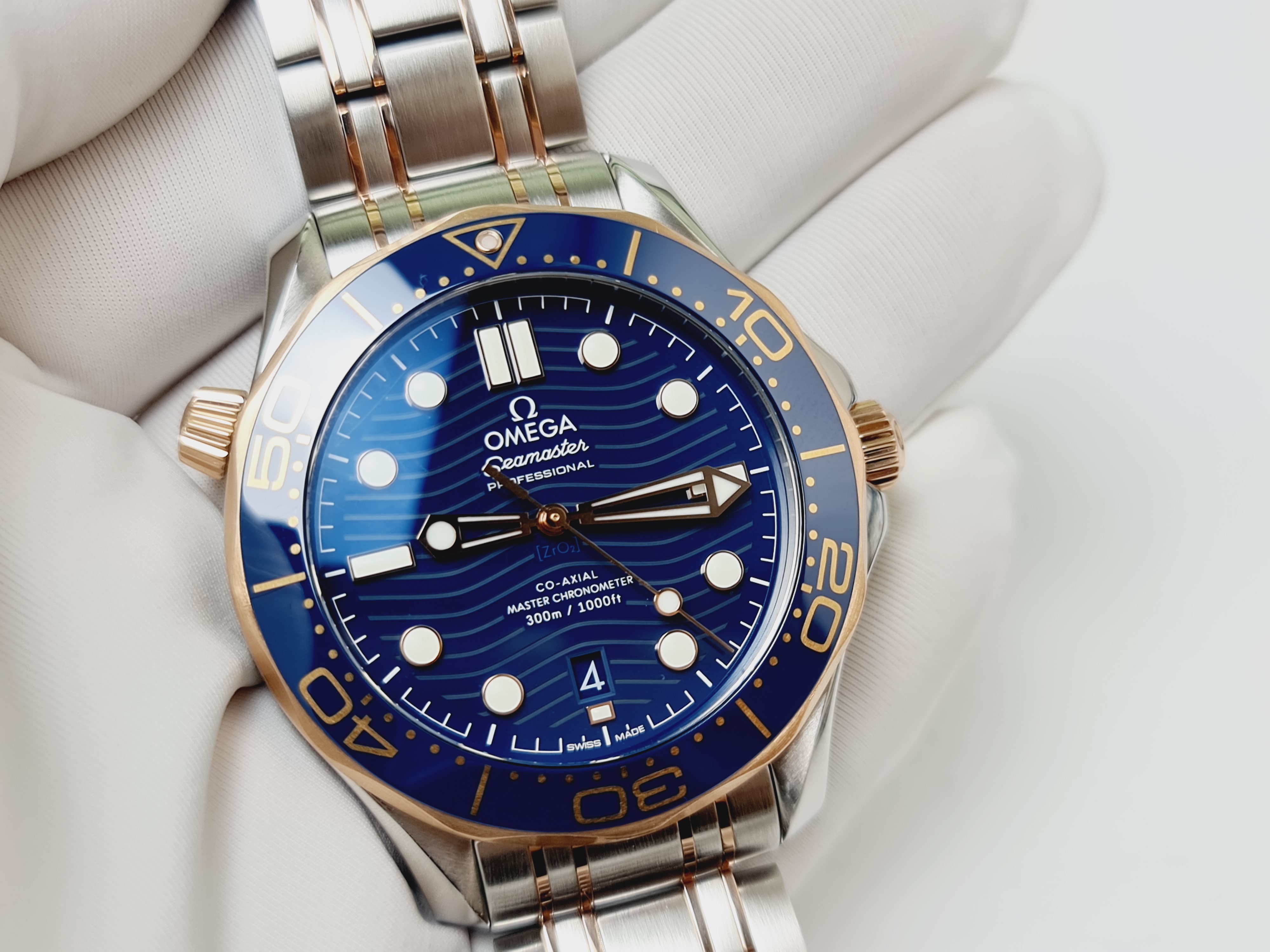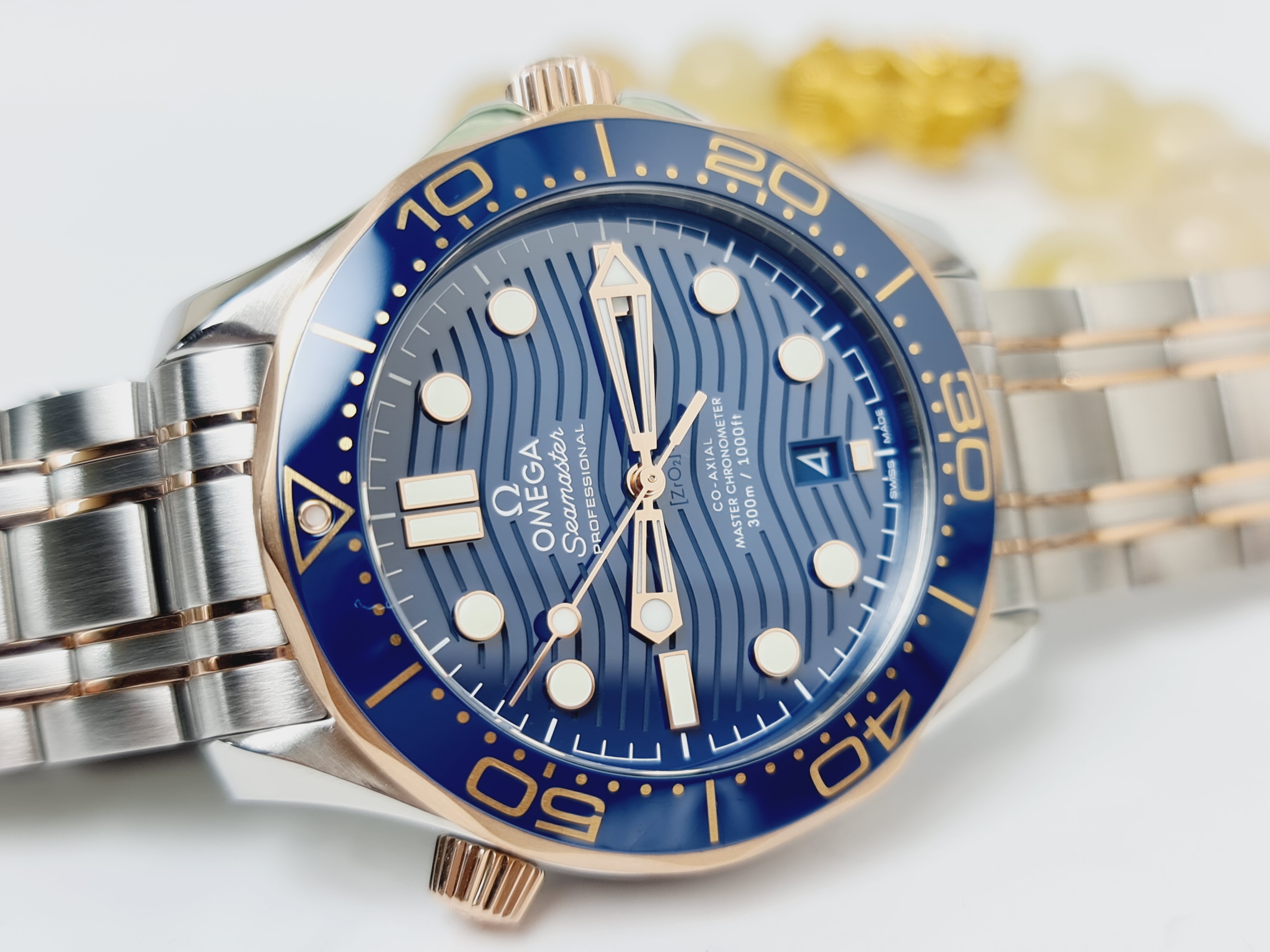 – Vòng Benzel và dial được làm bằng chất liệu gốm Ceramic siêu bóng, cùng với đó dial blue được khắc laser vân sóng đặc trưng của dòng sea300.